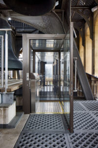 The unique passenger lift was designed in Andover and has been made to fit into an existing ventilation shaft within the 96-metre-high clock tower and enables easier maintenance access for teams as an alternative to the 334 steps. With clock-keepers and maintenance teams able to view the main journey up and through the ventilation shaft through the glazed glass panels of the lift doors. In addition, the strengthened, hard-wearing walls and floors of the lift also enable it to be used as a goods lift for maintenance items.